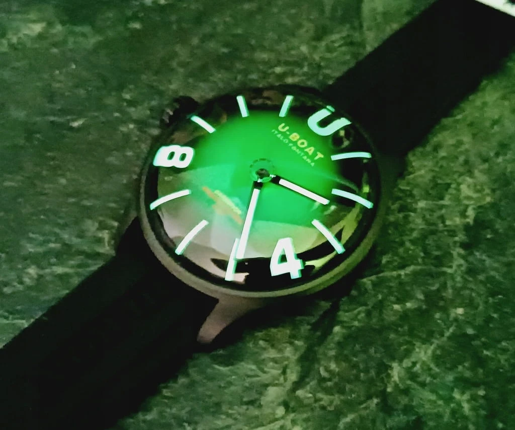 Choć szkło pod pewnymi kątami wydaje się nie występować, to w istocie jest ono obecne. Twórca do zabezpieczenia tarczy wykorzystał najwyższej jakości szkło szafirowe o zakrzywionej powierzchni. Sferyczne szkło szafirowe odszukać można tylko w zegarkach o wysokiej wartości ze względu na trudną obróbkę związaną z jego twardością przekładającą się na niemal bezkonkurencyjną odporność na zarysowania. Okazałej średnicy kopertę tworzy stal szlachetna nierdzewna 316L gwarantująca wysoką odporność na korozję i uszkodzenia. Charakterystycznie dla U-BOAT koronka przymocowana jest z jej lewej strony.