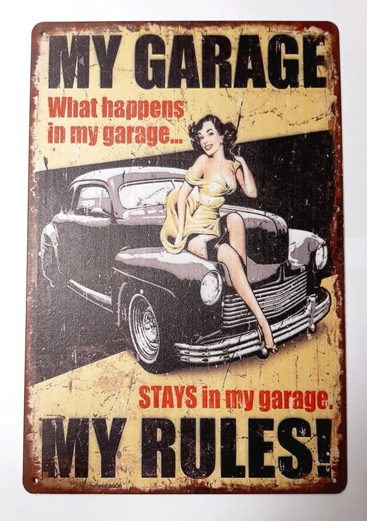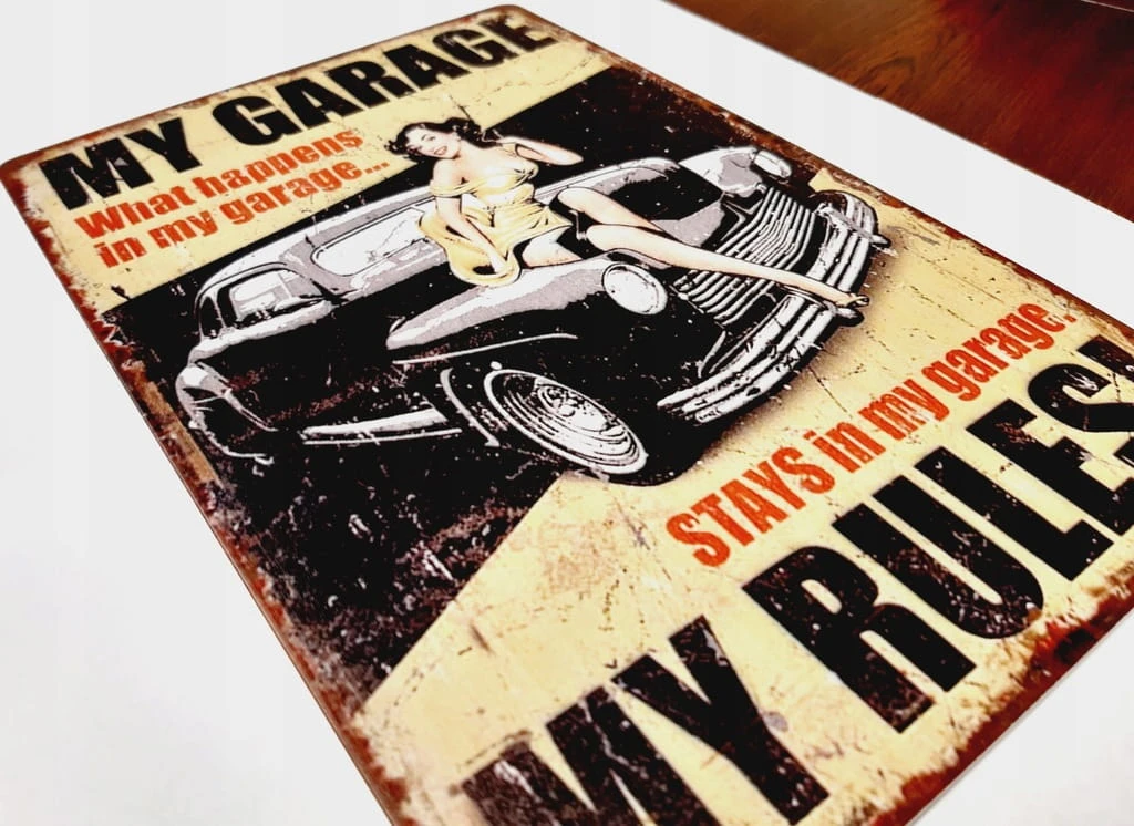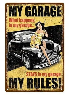 BLASZANA TABLICZKA DEKORACYJNA, STYL RETRO 20x30, MÓJ GARAŻ MOJE ZASADY