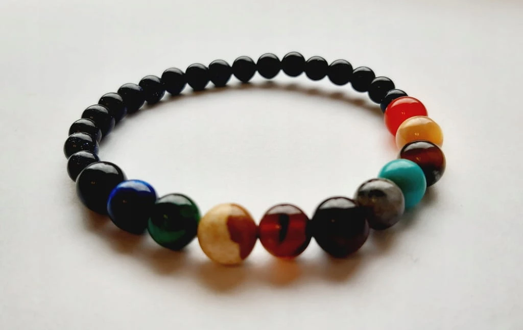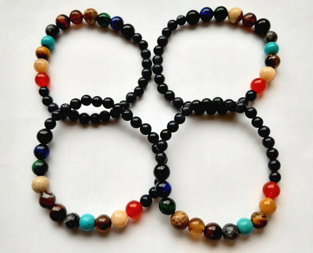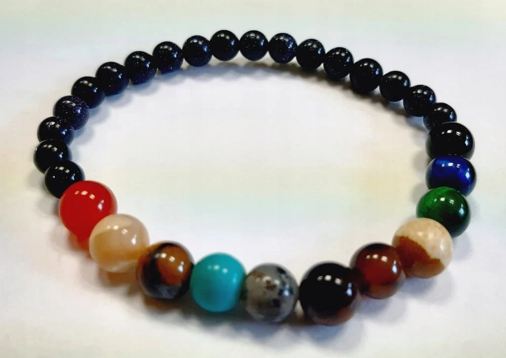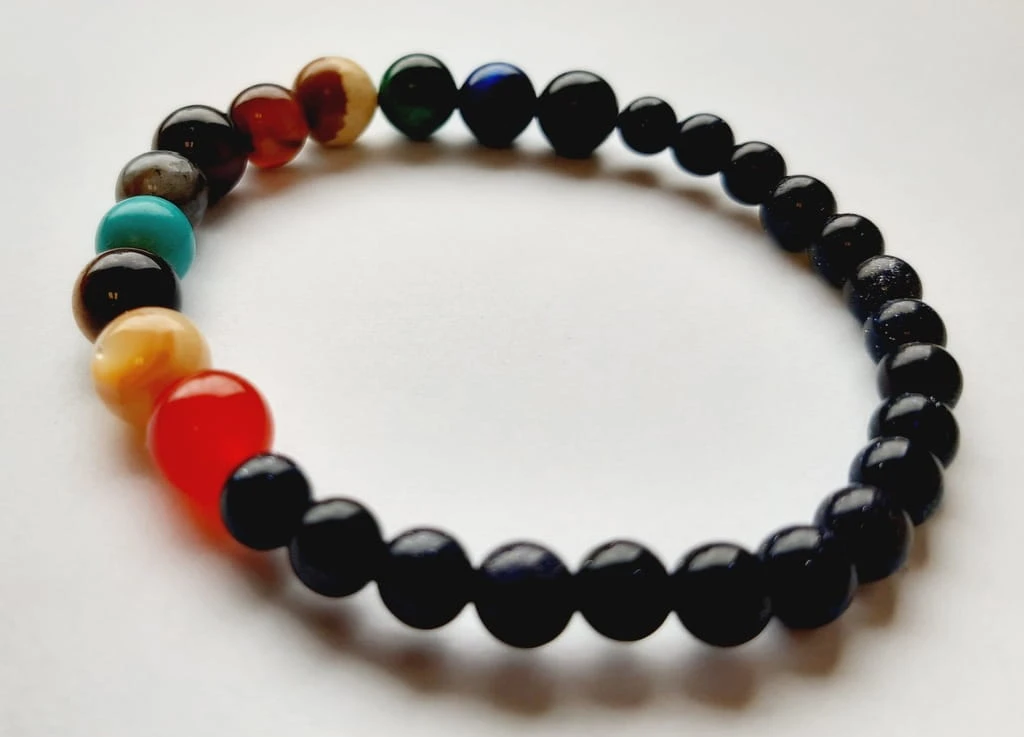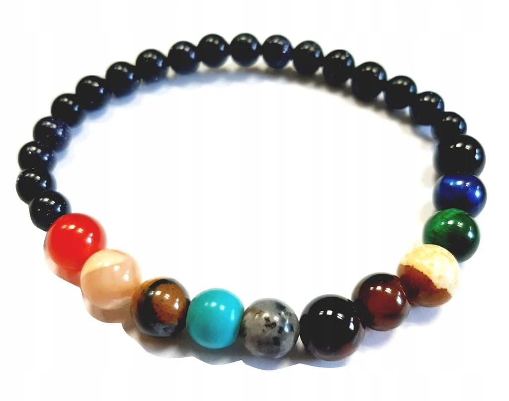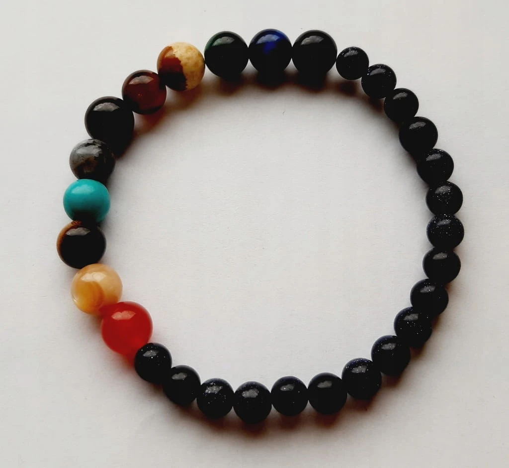 BRANSOLETKA - UKŁAD SŁONECZNY KAMIENIE NATURALNE, OBSYDIAN, AGAT, TURKUS