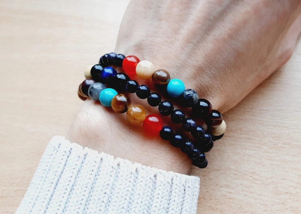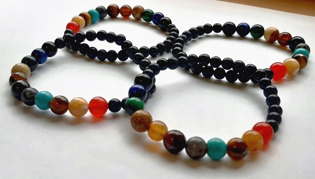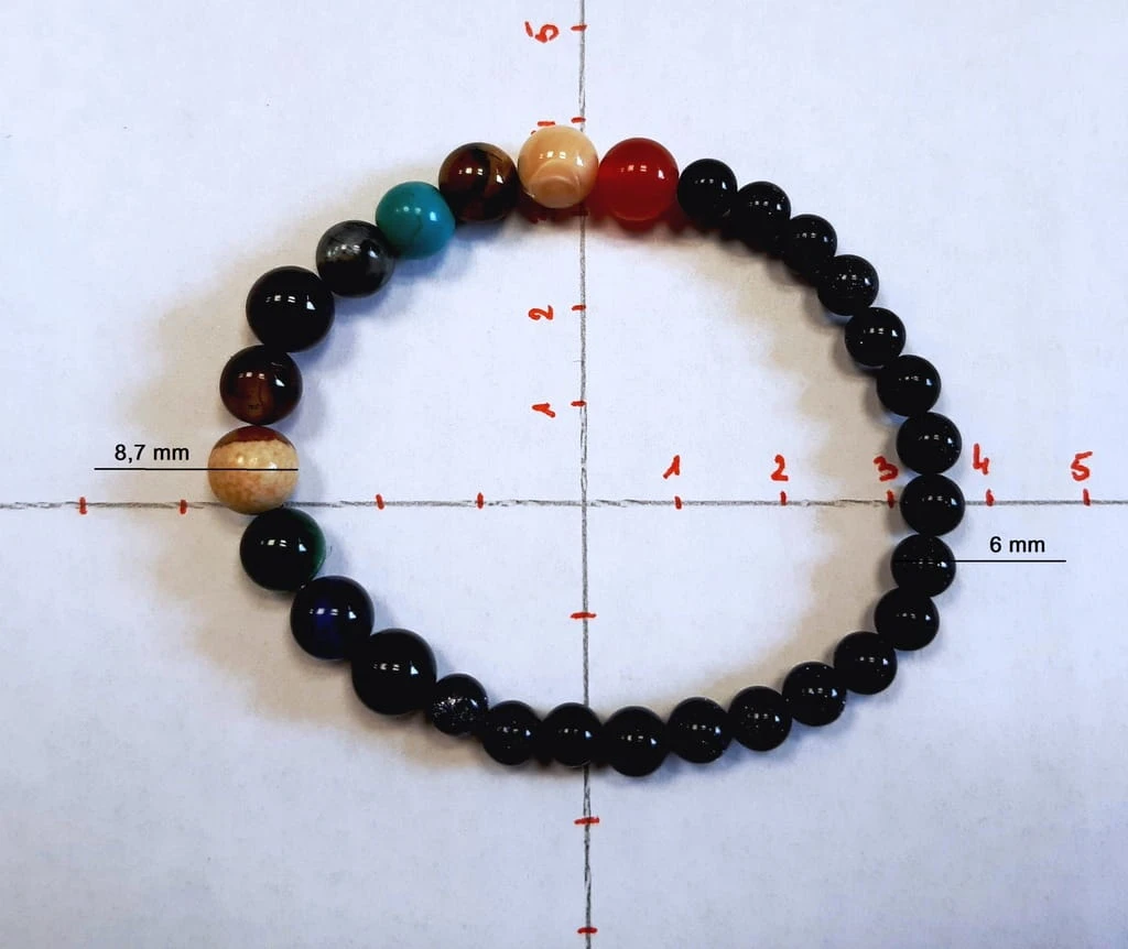 PRZEPIĘKNA BRANSOLETKA Z NATURALNYCH KAMIENI - PRZEDSTAWIAJĄCA UKŁAD SŁONECZNY