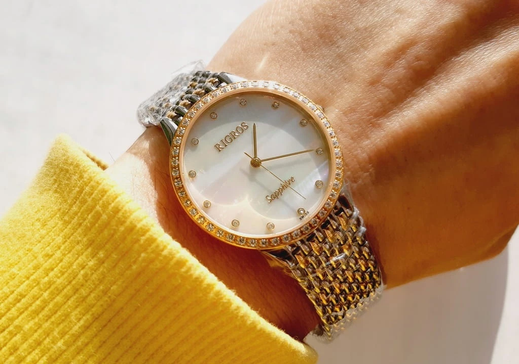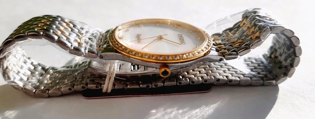 PRZEPIĘKNY, SZWAJCARSKI ZEGAREK Z PERŁOWĄ TARCZĄ RIGROS - NA PIĘKNEJ BRANSOLECIE