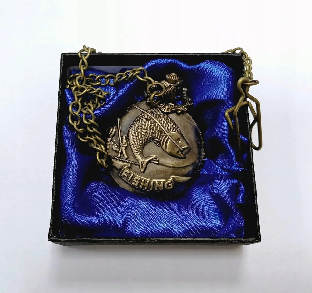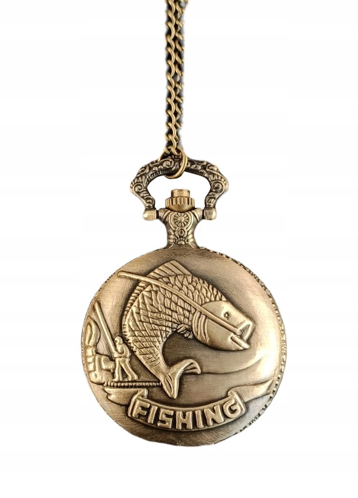 PIĘKNY ZEGAREK KIESZONKOWY NA ŁAŃCUSZKU DLA WĘDKARZA