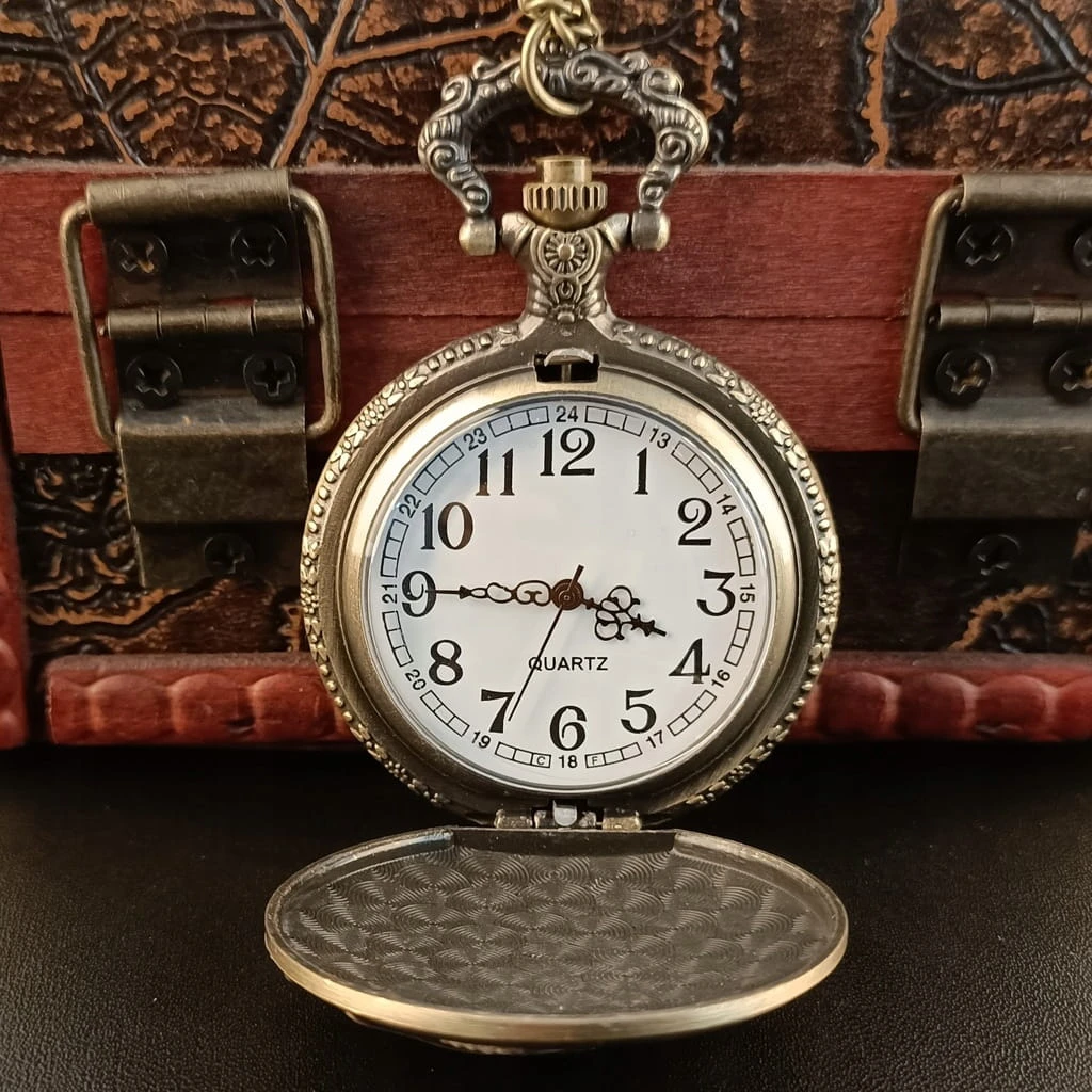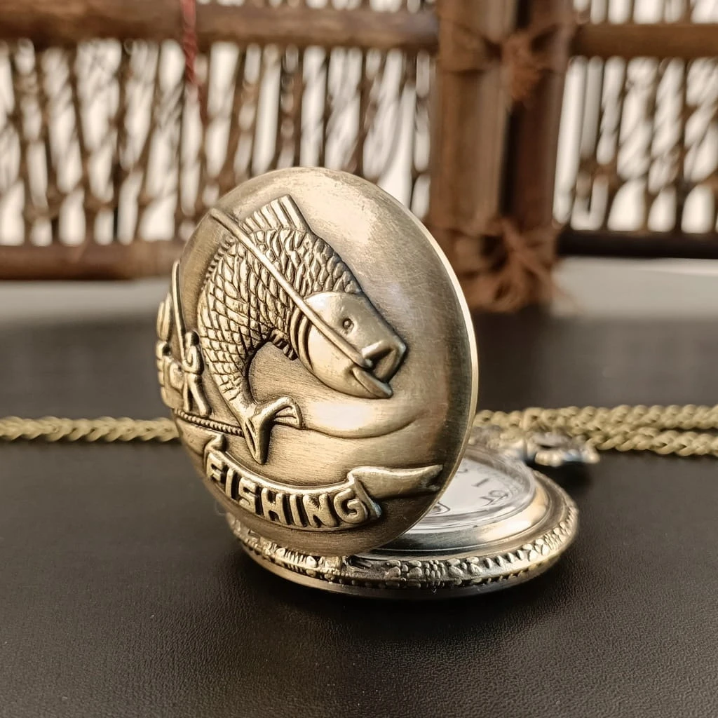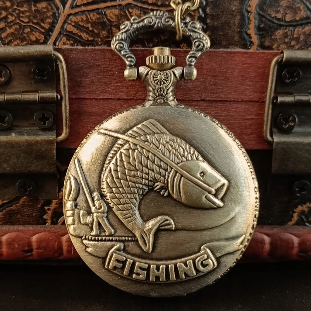 Kieszonkowy zegarek wędkarski Fishing, busola dla wędkarza - styl retro