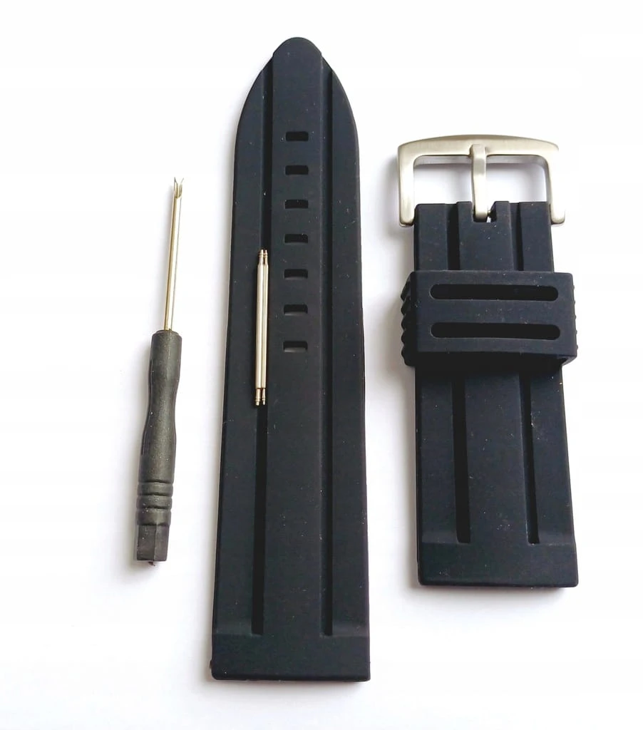 MASYWNY WODOODPORNY CZARNY GUMOWY PASEK 22MM +TELESKOPY +PRZYRZĄD - PREMIUM