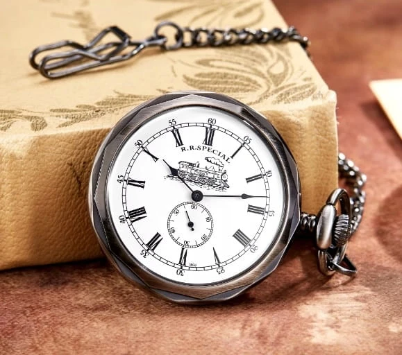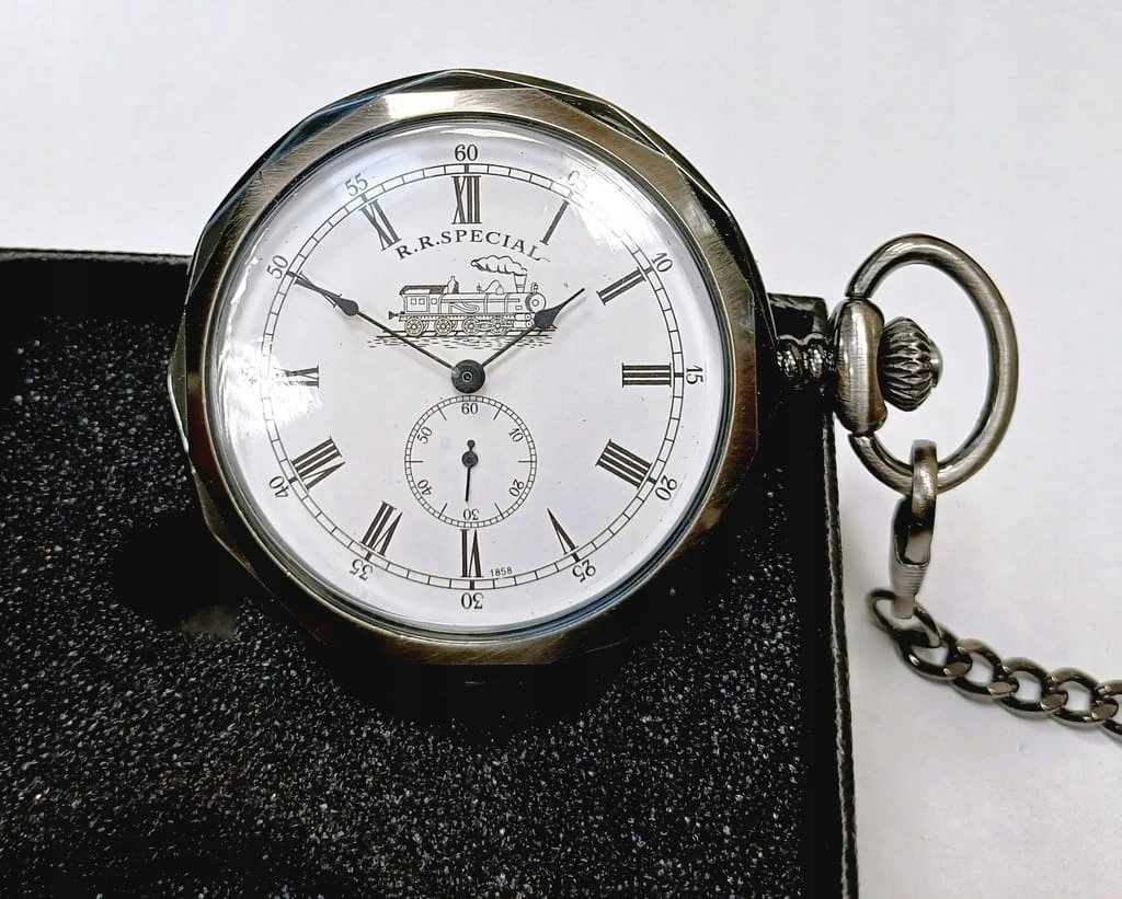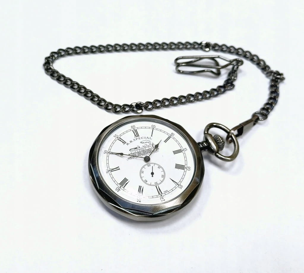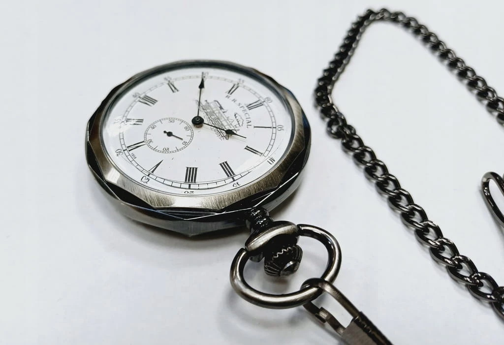 PIĘKNY ZEGAREK MECHANICZNY NA ŁAŃCUSZKU, W STYLU STARYCH ZEGARKÓW KOLEJARSKICH
