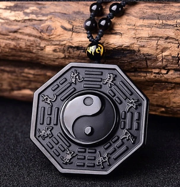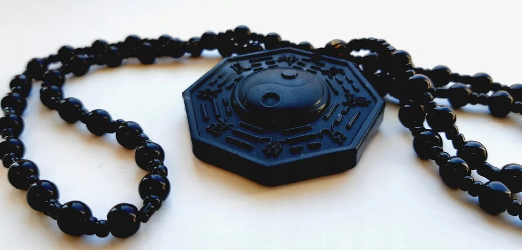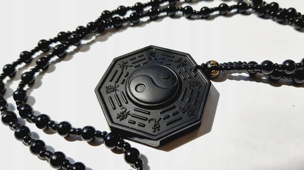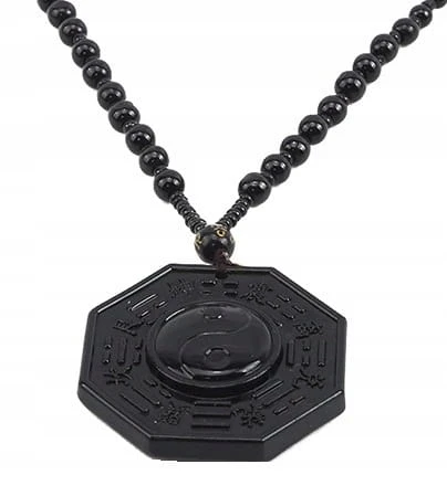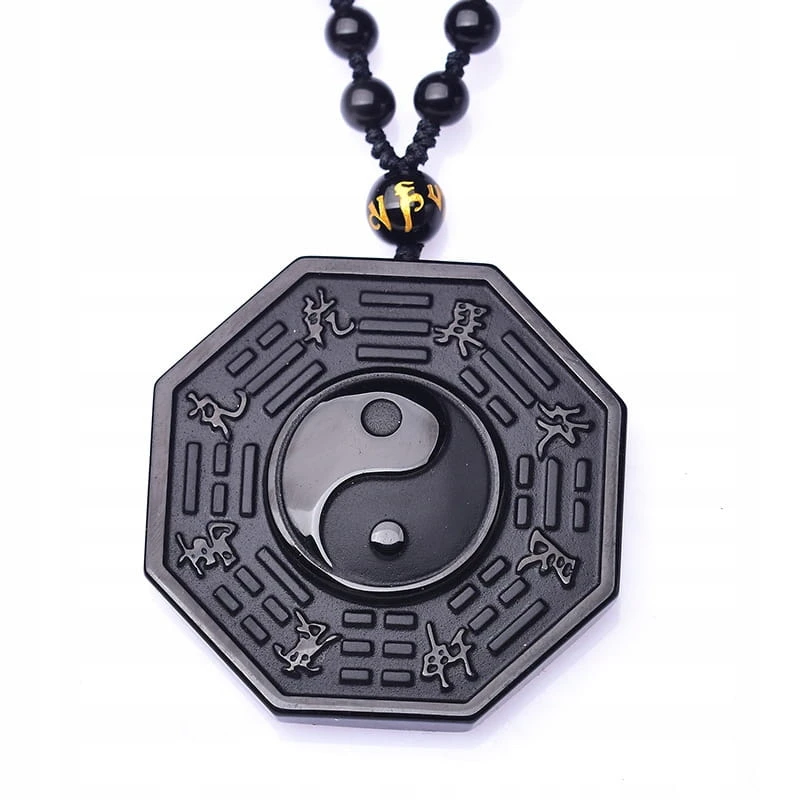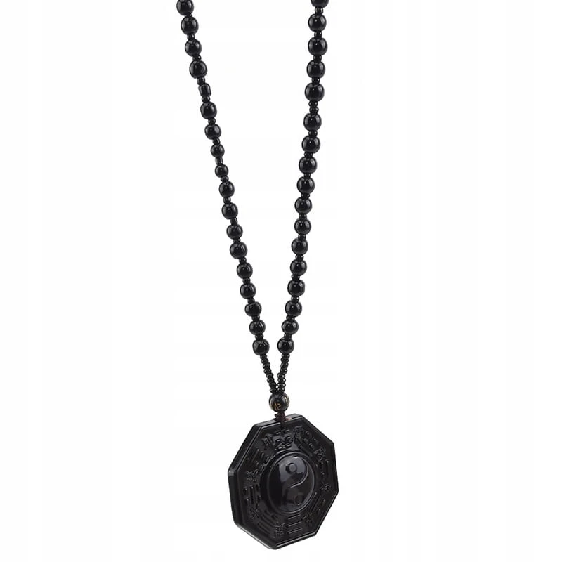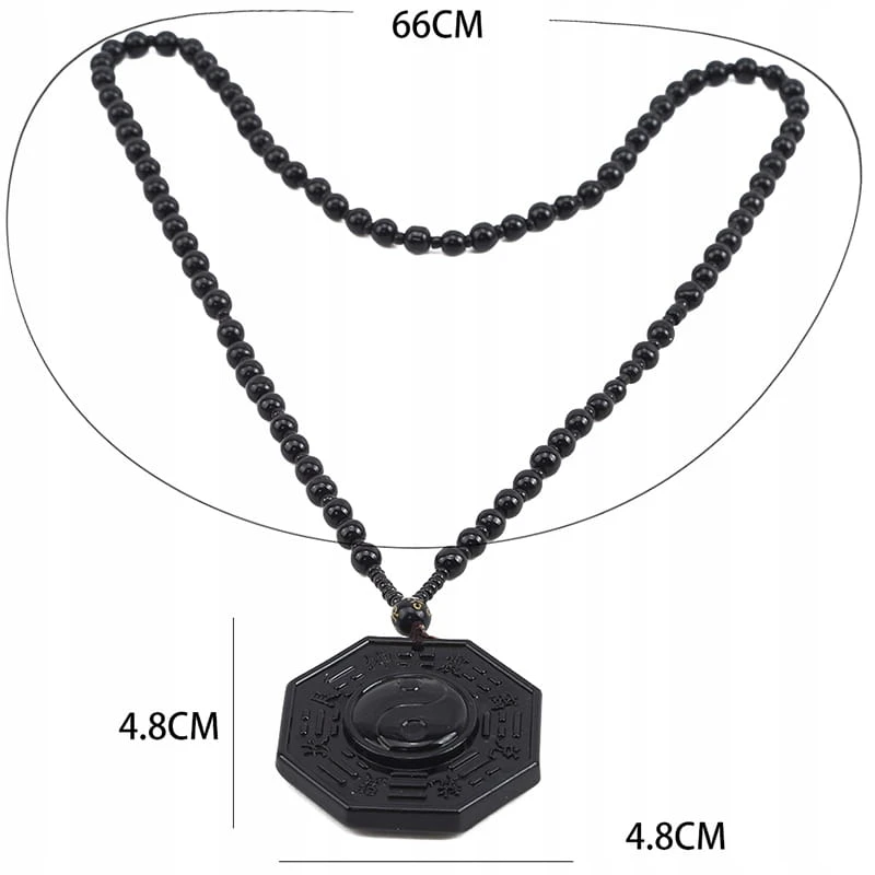 Masywny naszyjnik Yin i yang, bagua z obsydianu, styl Tai Chi