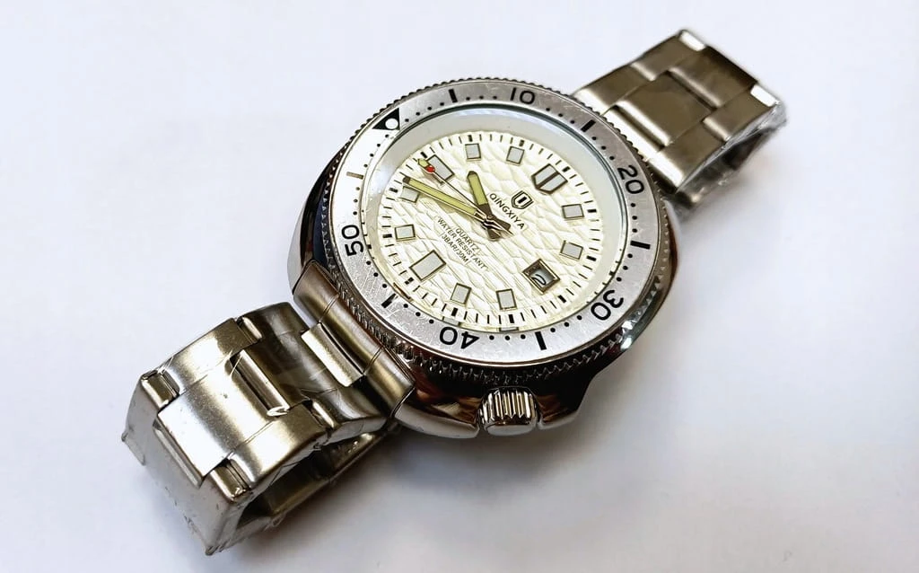 Zegarek wyposażony w obrotowy pierścień, umożliwiający dodatkowe odmierzanie czasu.