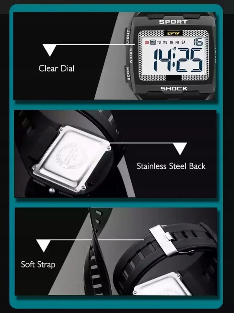 NOWY, MASYWNY I CZYTELNY ZEGAREK ELEKTRONICZNY LCD, TPW