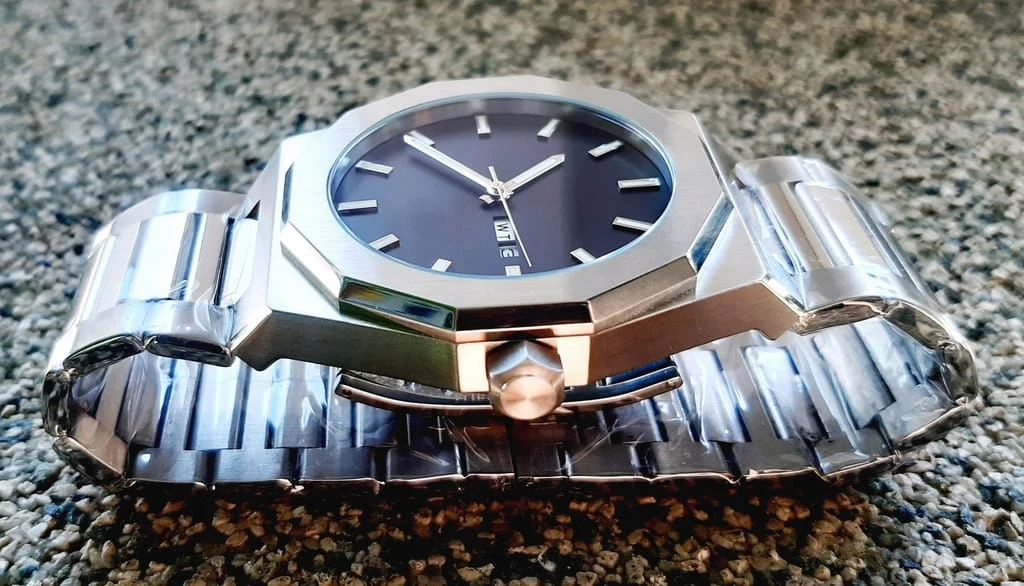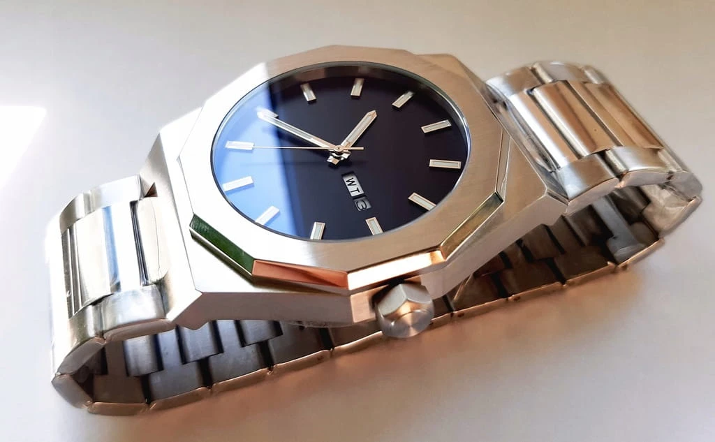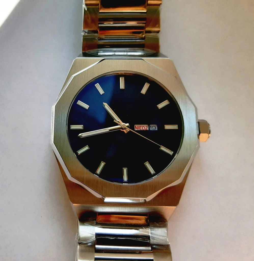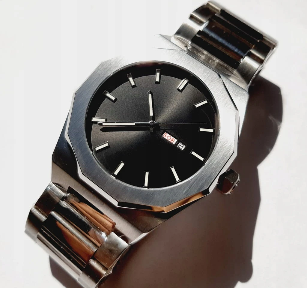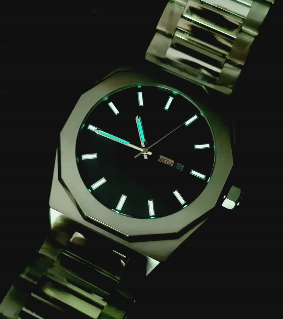 BARDZO MĘSKI, MASYWNY ZEGAREK O MINIMALISTYCZNYM STYLU TARCZY (BEZ ZBĘDNYCH OPISÓW) WYKONANY ZOSTAŁ Z ANTYALERGICZNEJ STALI SZLACHETNEJ. JEGO BRANSOLETA JEST RÓWNIEŻ WYKONANA ZE STALI. ZEGAREK ZOSTAŁ WYPOSAŻONY W JAPOŃSKI MECHANIZM KWARCOWY, ZASILANY BATERIĄ KWARCOWĄ. CZASOMIERZ POSIADA DATOWNIK Z POLSKIMI DNIAMI TYGODNIA ORAZ KALENDARZEM MIESIĘCZNYM - WŁAŚNIE TO WYRÓŻNIA GO POŚRÓD INNYCH TRADYCYJNYCH ZEGARKÓW. WSKAZÓWKI ZEGARKA POKRYTE SĄ MASĄ FLUOROSCENCYJNĄ, DZIĘKI CZEMU MOŻNA W CIEMNOŚCI LUB WARUNKACH OGRANICZONEJ WIDOCZNOŚCI ODCZYTAĆ GODZINĘ.