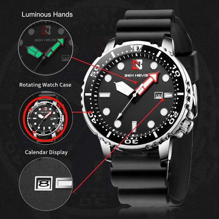 NOWY, SPORTOWY MĘSKI ZEGAREK BEN NEVIS - DIVER STYL
