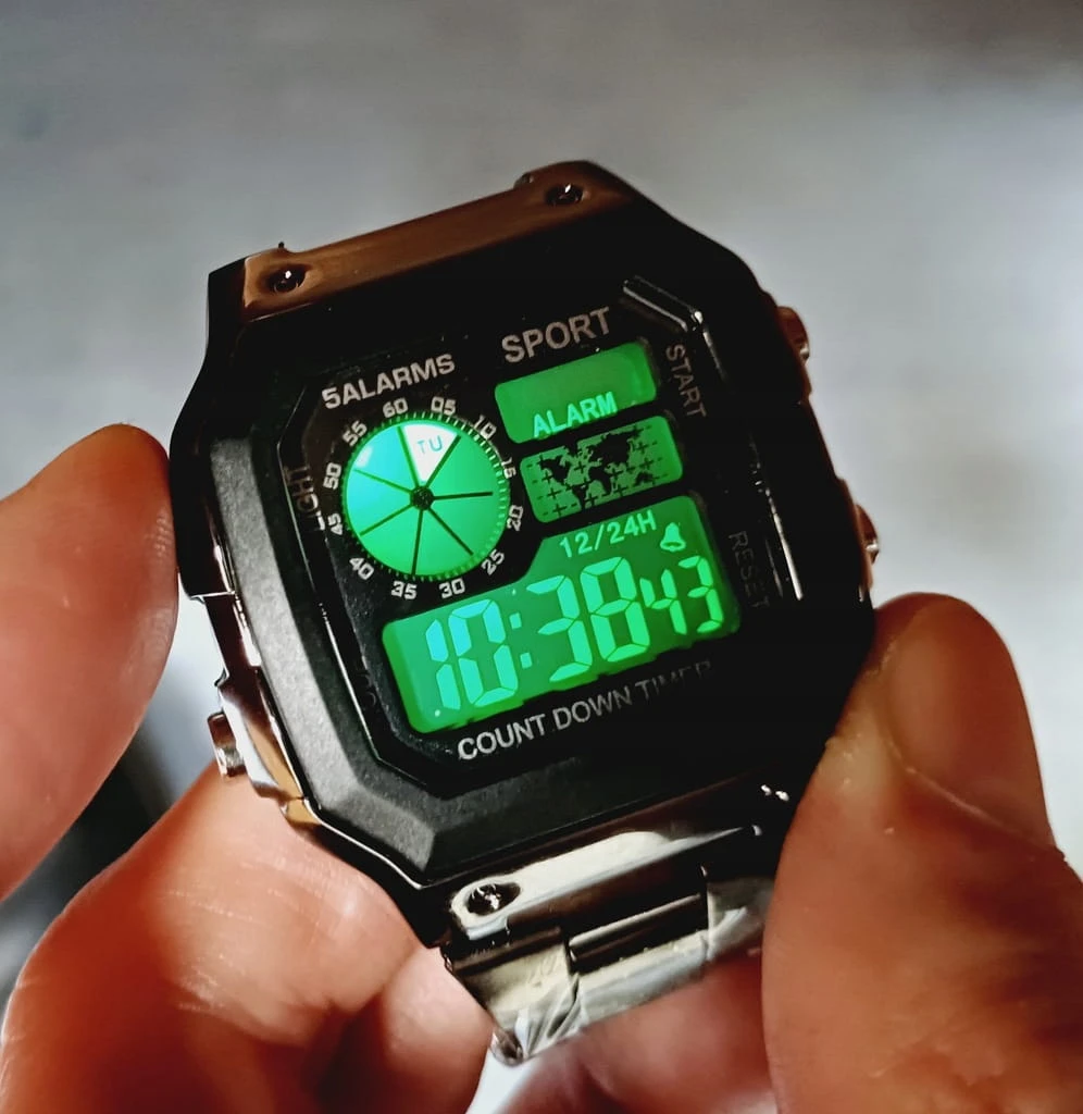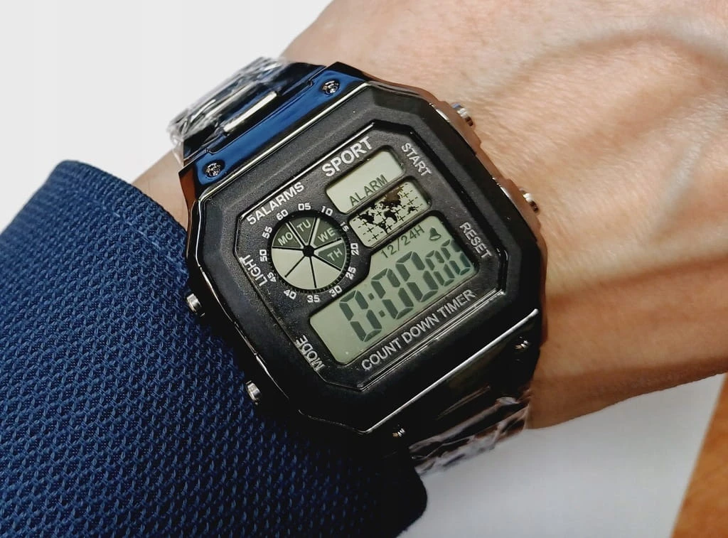 NOWY SPORTOWY ZEGAREK ELEKTRONICZNY LED, ZMIENNE PODŚWIETLENIE - STYL RETRO