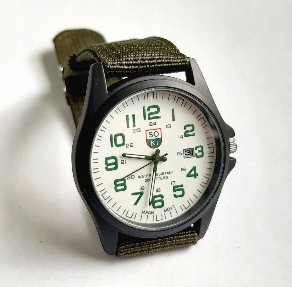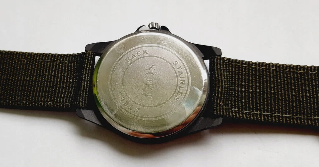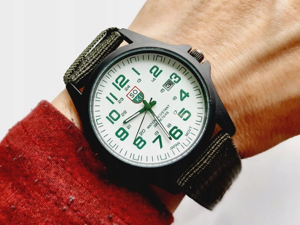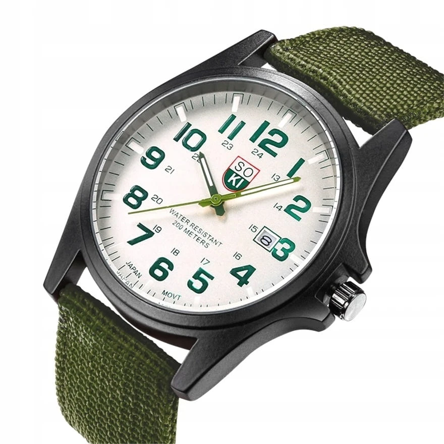 Nowy, wojskowy zegarek Soki, datownik + parciany pasek nato