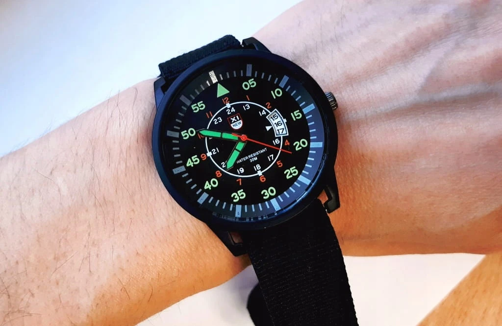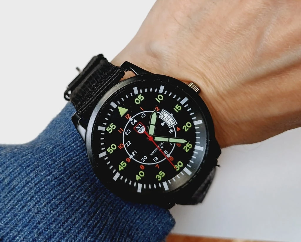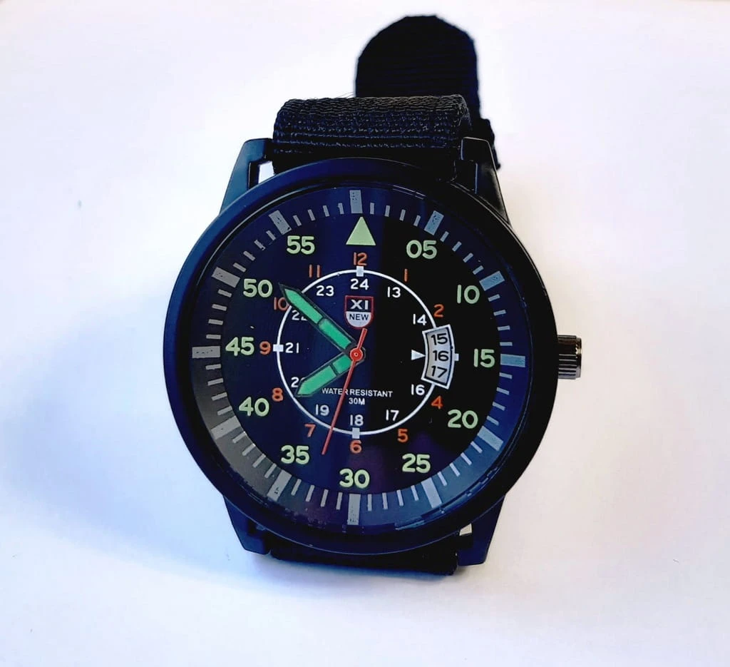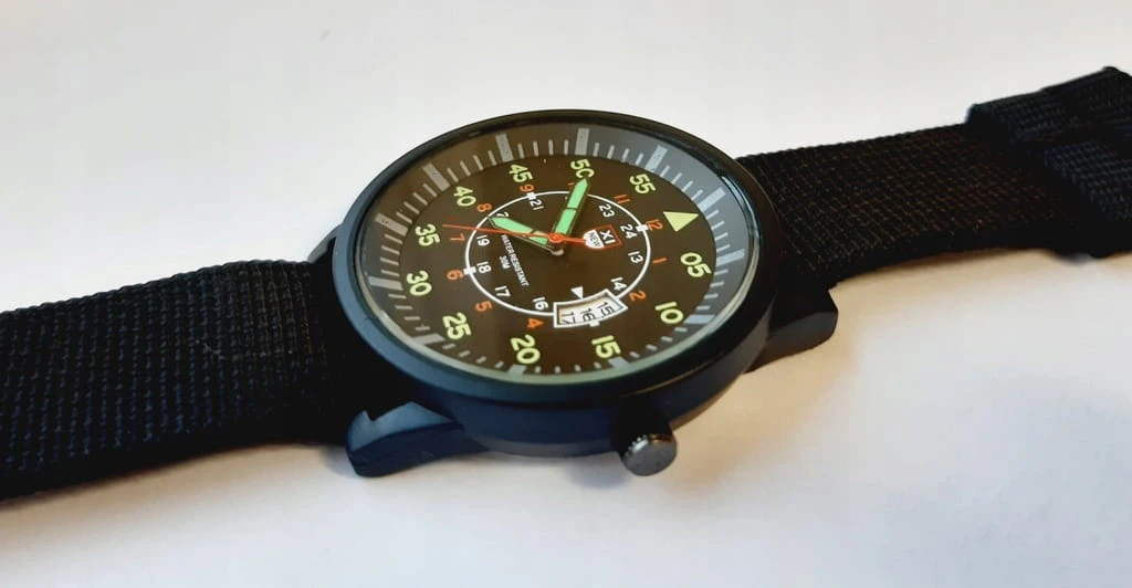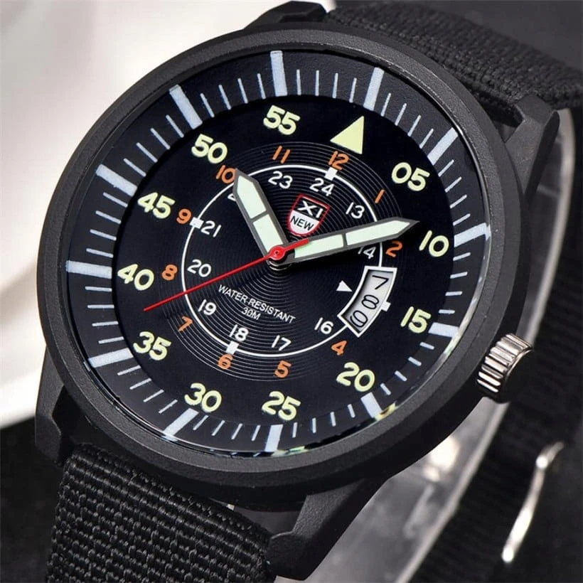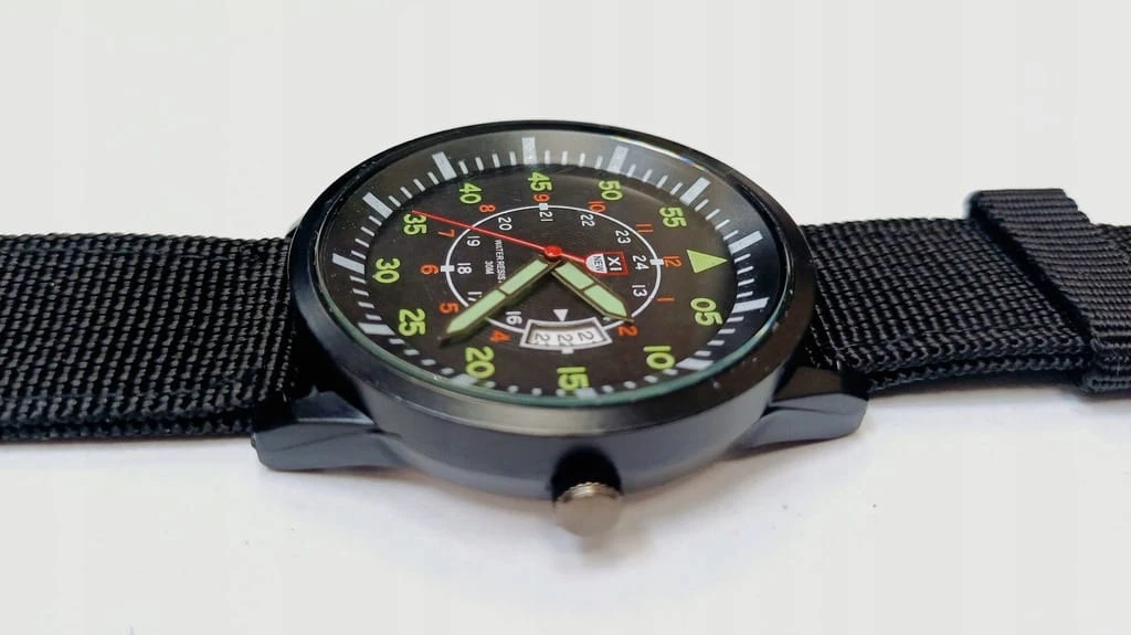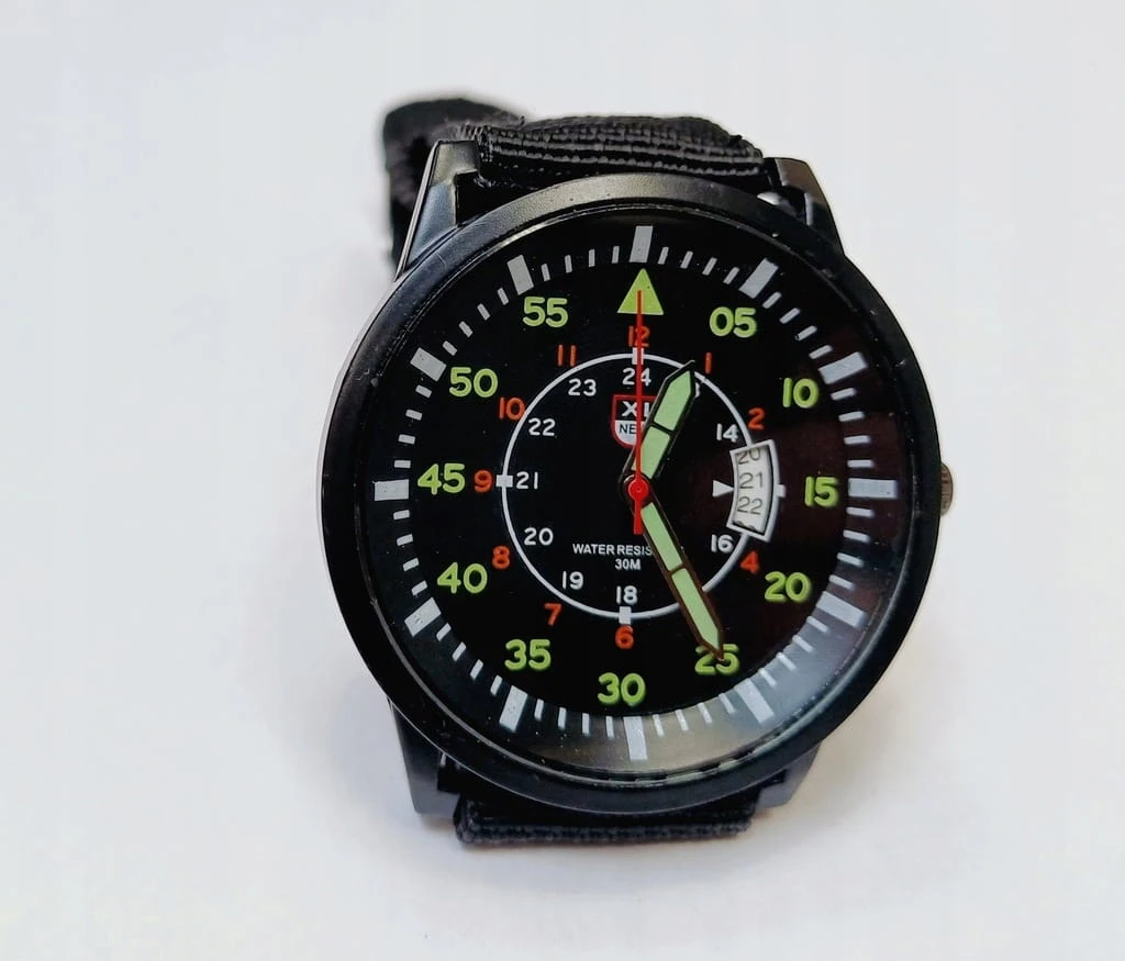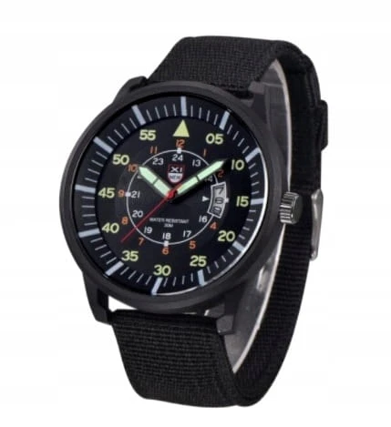Nowy, wojskowy zegarek XINEW luminous, parciany pasek, datownik
