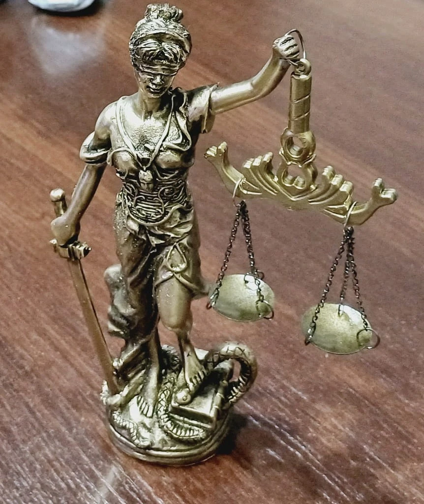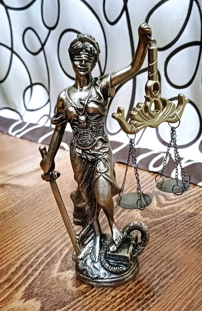 PIĘKNA FIGURKA, STATUA DEKORACYJNA - TEMIDA BOGINI PRAWA I SPRAWIEDLIWOŚCI