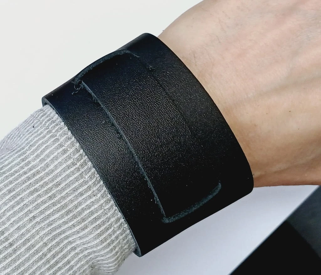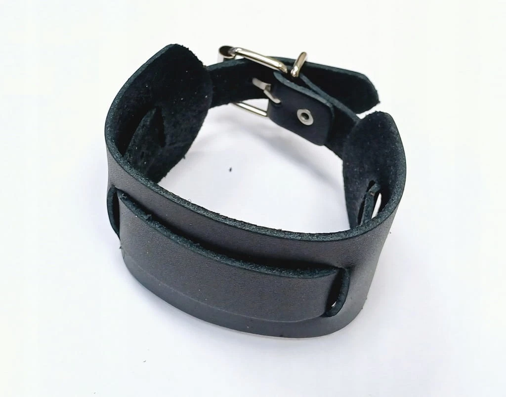 Skórzana, szeroka bransoleta, skóra, szeroki pasek zegarka 22mm - czarny